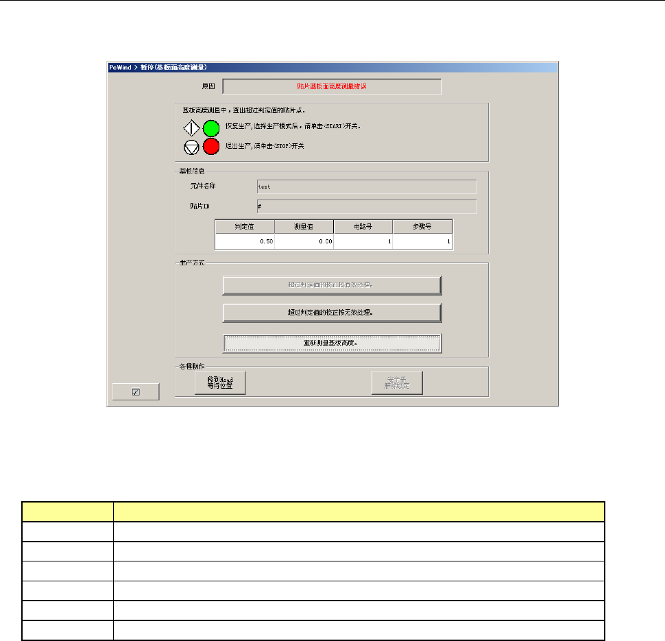 在贴片基板面高度错误画面里,按下<START>开关时,会按生产重新开始模式中指定的动作进行操