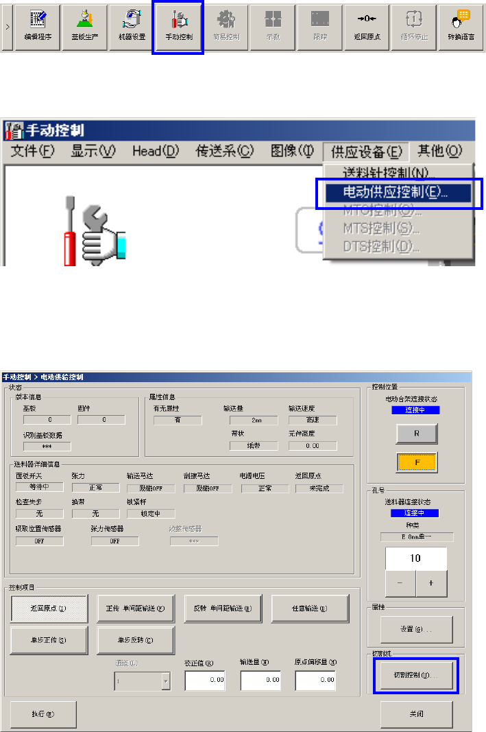 ② 从手动控制内的供给装置项目中,选择电动供应控制。