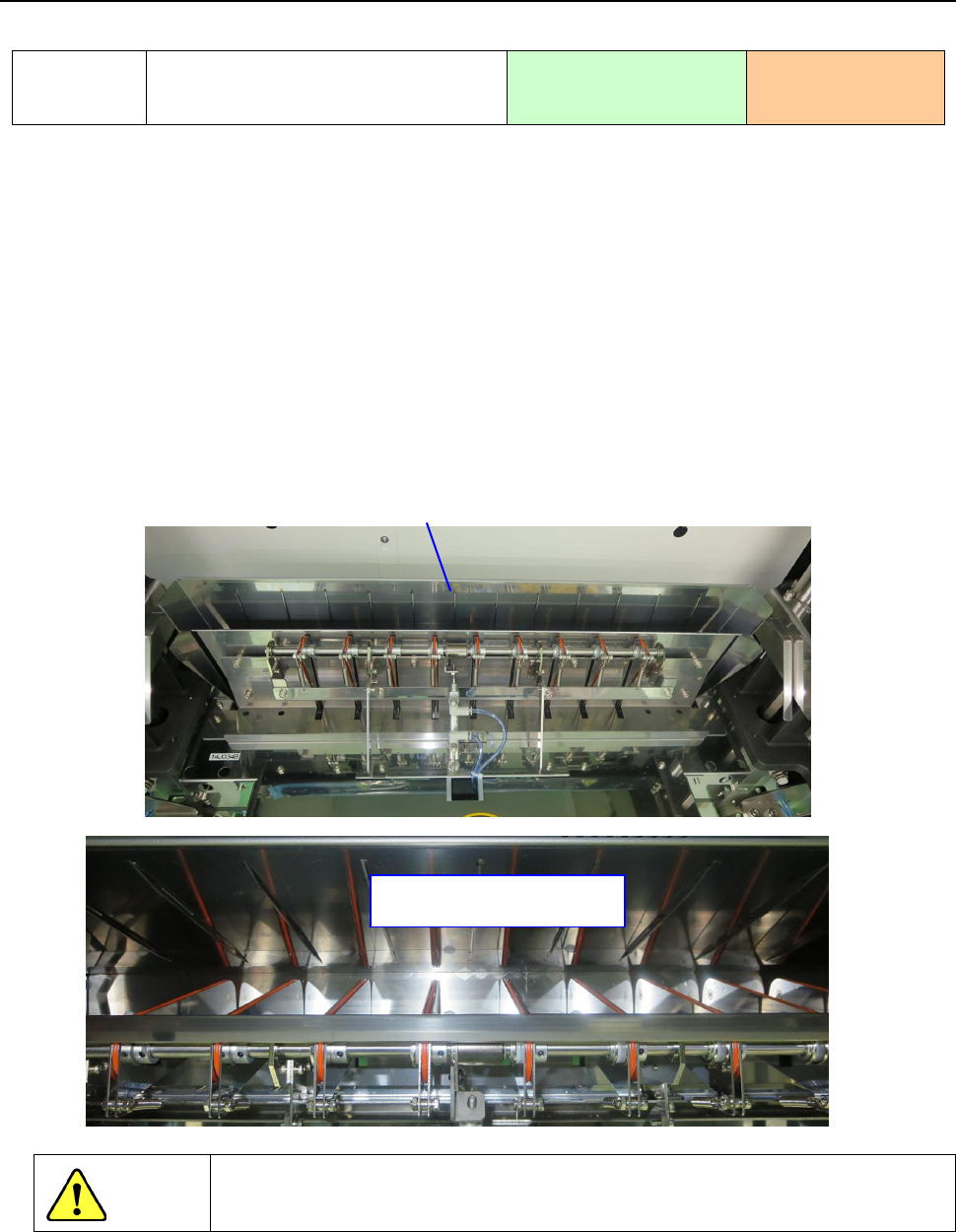 3) 请打开切带机组合件的上导轨,以目视确认切带机的刀刃已关闭(如断开装置主体的电源,切带