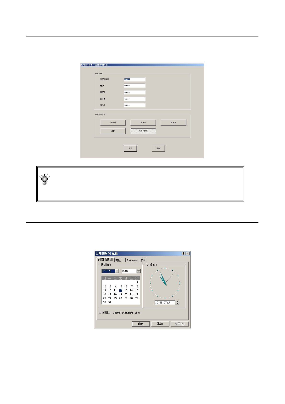 本设备根据作业人员的操作熟练程度,设置了用户级别,对操作范围进行了限制。