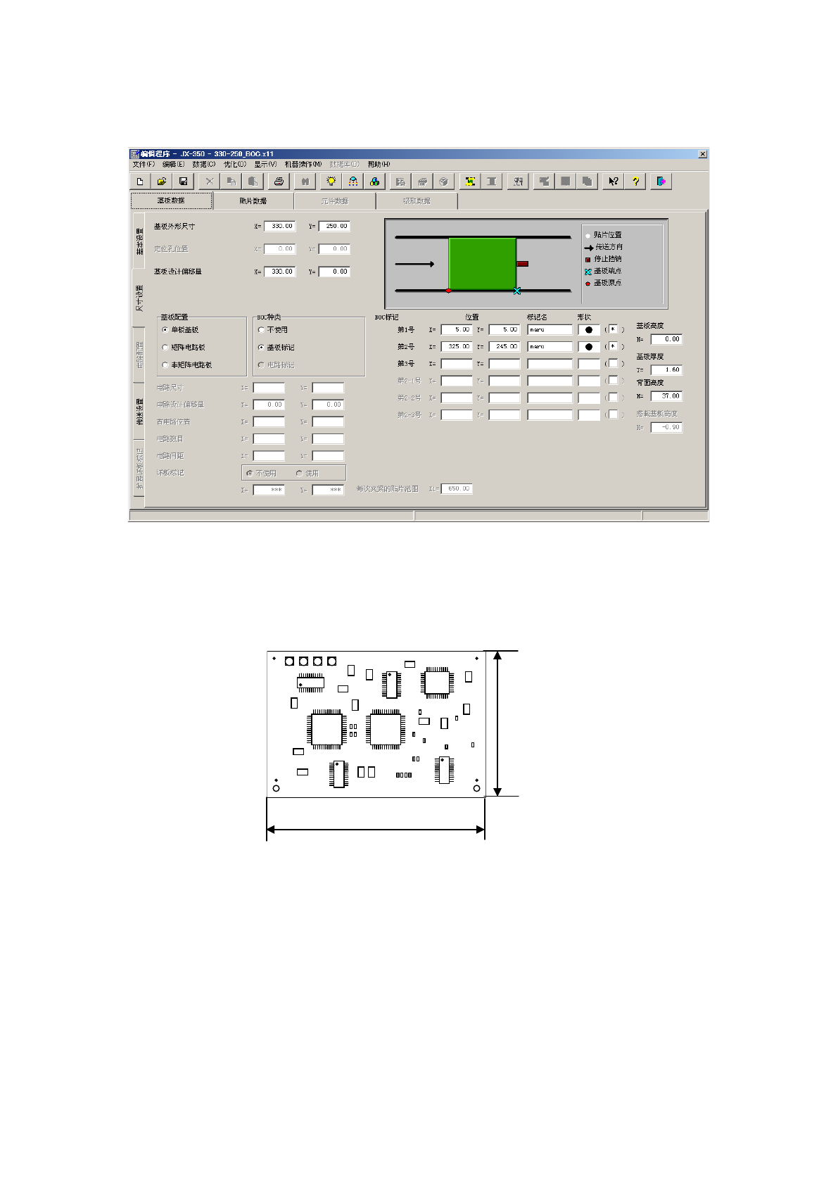 在生产程序中,用坐标来表示基板上的元件及标记的位置。