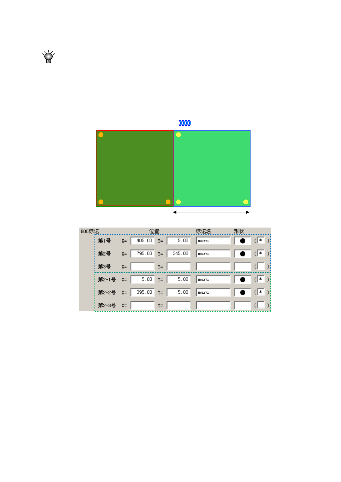 下称为第 1 号 BOC 标记),和 第 2 次夹紧贴片范围的 BOC 标记(以下称为第 2 号 BOC 标 记 )。