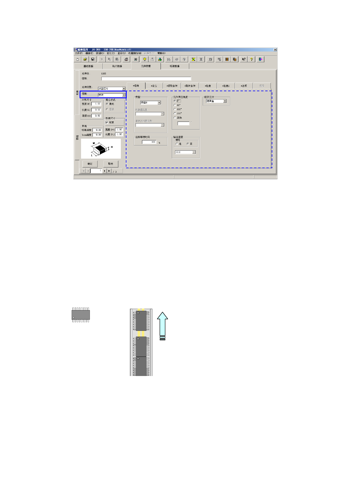 以JUKI的元件供应角度为0°,输入管状供料器上的元件包装姿势的倾斜角度。