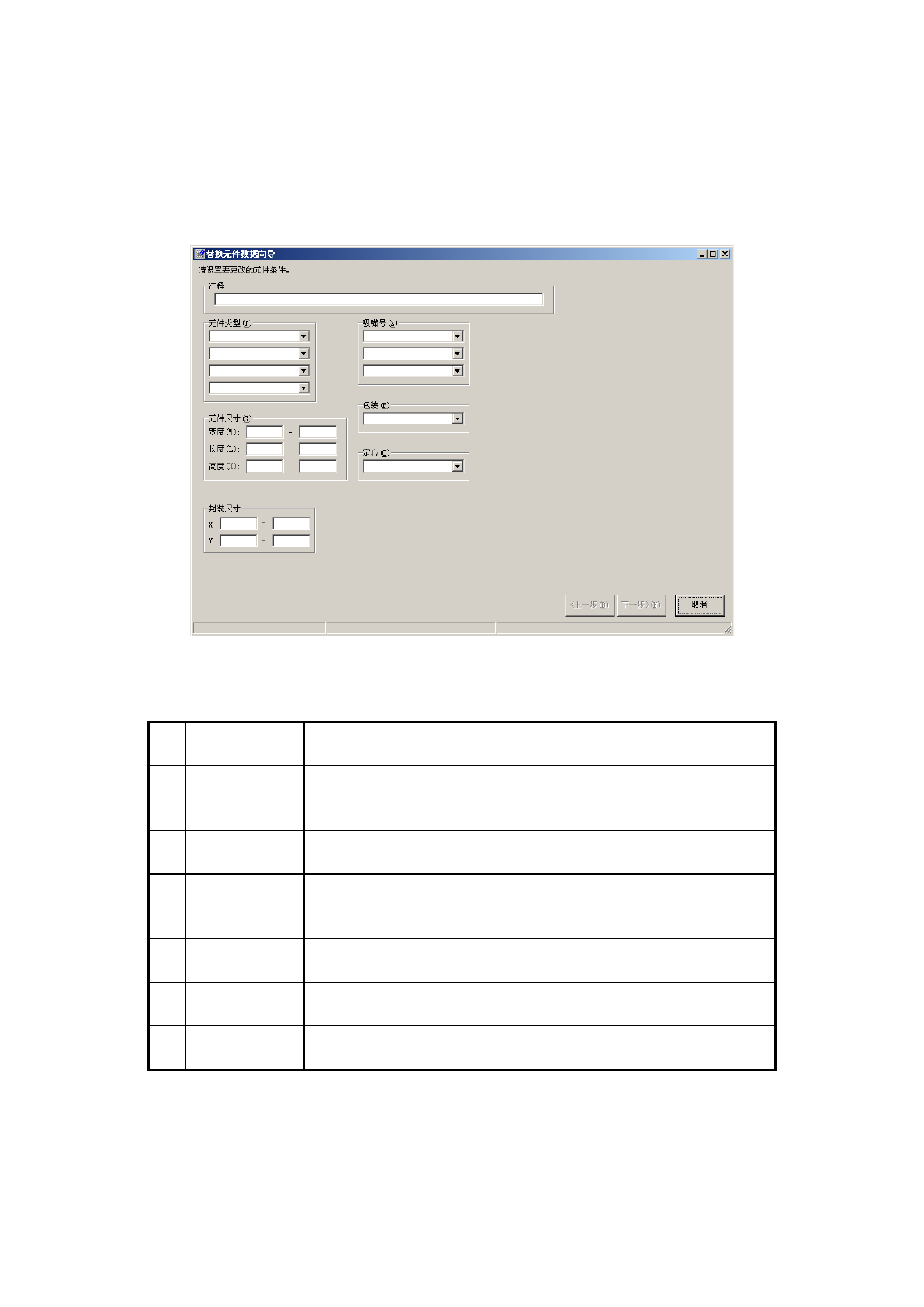 从编辑菜单中选择[替换],启动如下的「替换元件数据向导」。