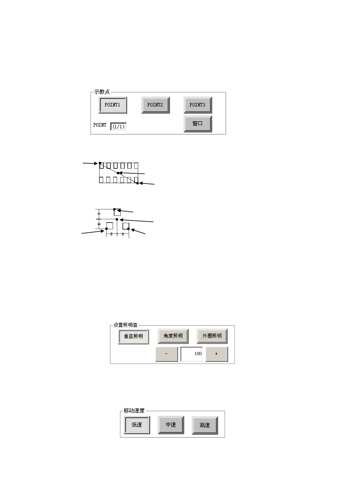 可以选择 POINT1、POINT2、POINT3 及窗口。通常使用 POINT1 进行示教。请根据需要进行选