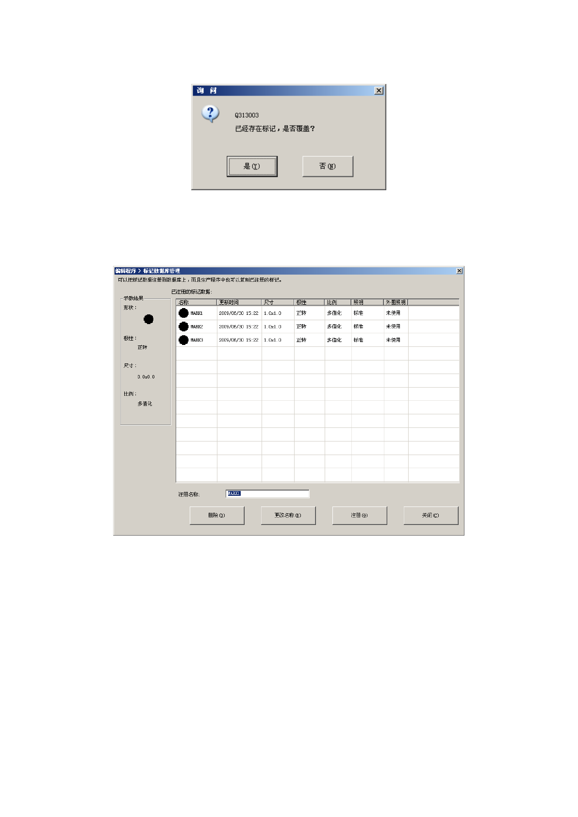结束示教后,如果标记已经被注册过,会显示是否要进行覆盖的提示信息。
