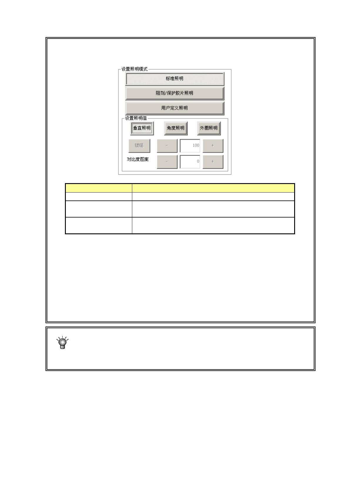 ※选择用户定义照明模式时,一般设置在50~200之间。设置50 以下时,