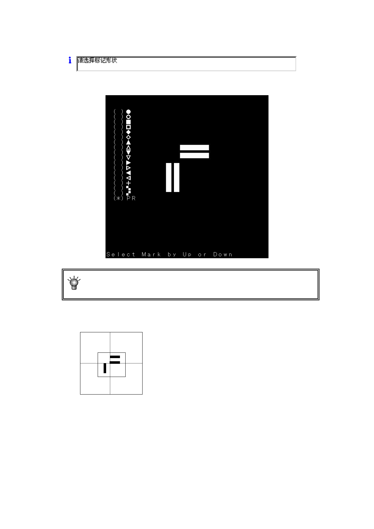 请用上下方向按钮调整,使标记清晰可见,把周围的干扰降低到最低。