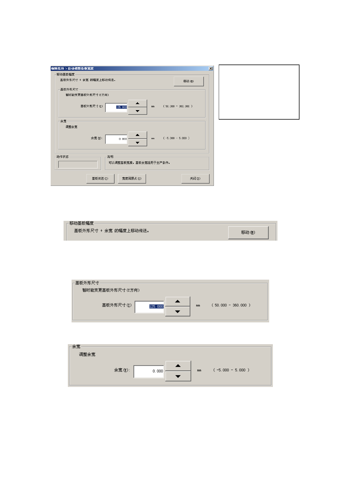将传送宽度向基板外形尺寸+余宽的位置移动。运行时传送宽度值适用以下项目设定值。