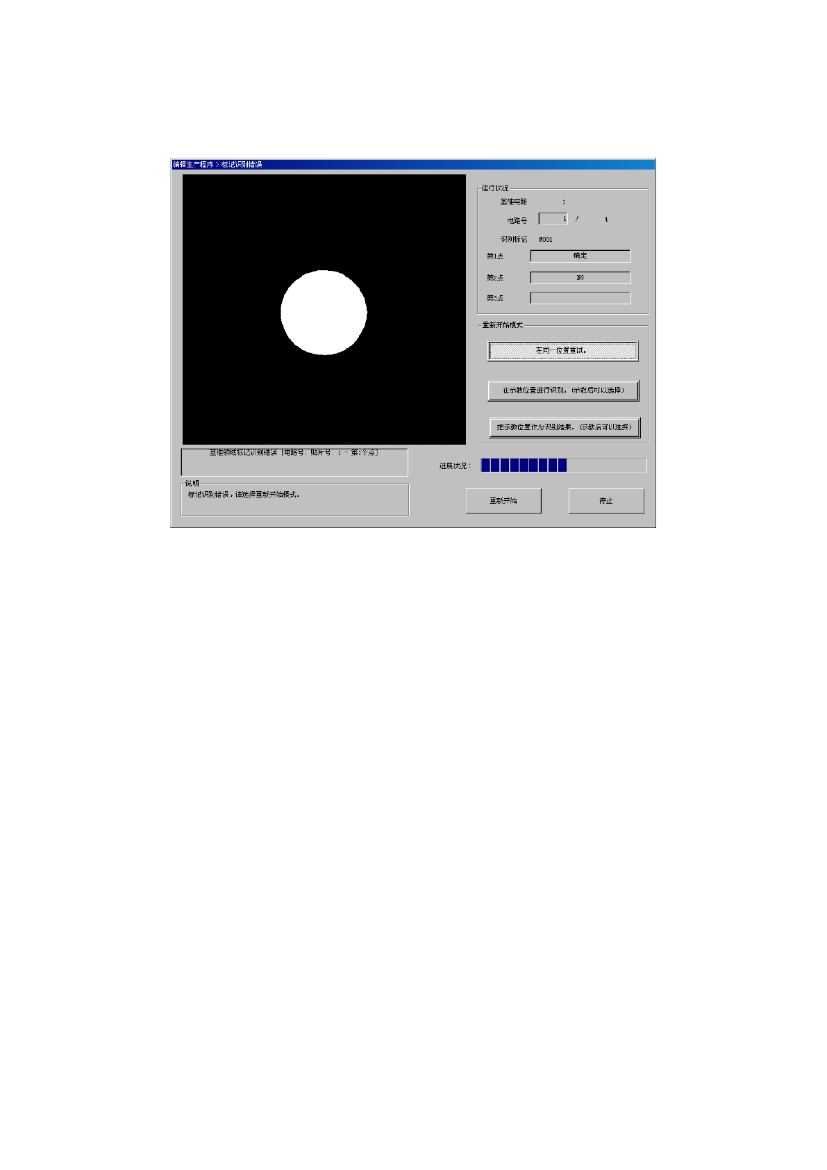 当执行基准领域标记识别失败时,会在画面的[说明]栏中显示提示信息,可以选择[重新开始模式]项