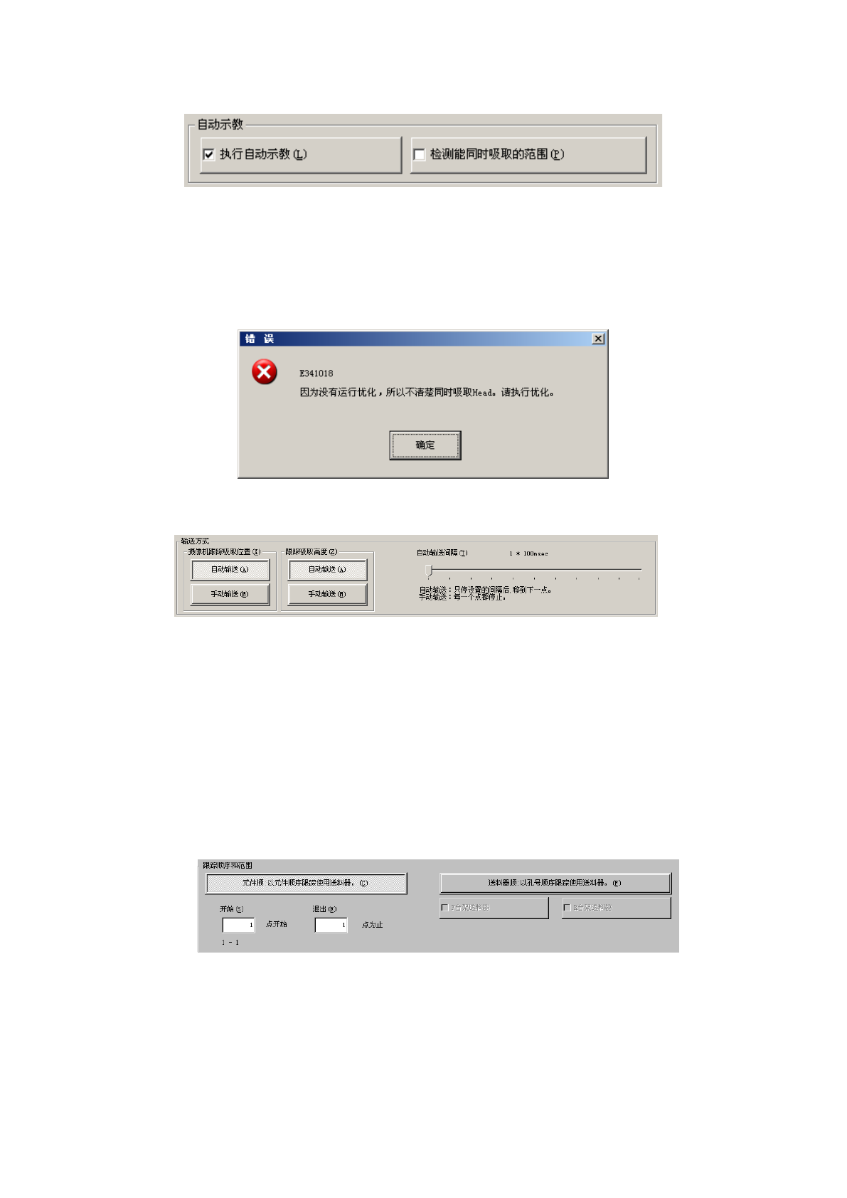 检查能否同时吸取。需要先执行优化。若未执行优化而按下按钮时,会显示错误提示,要求