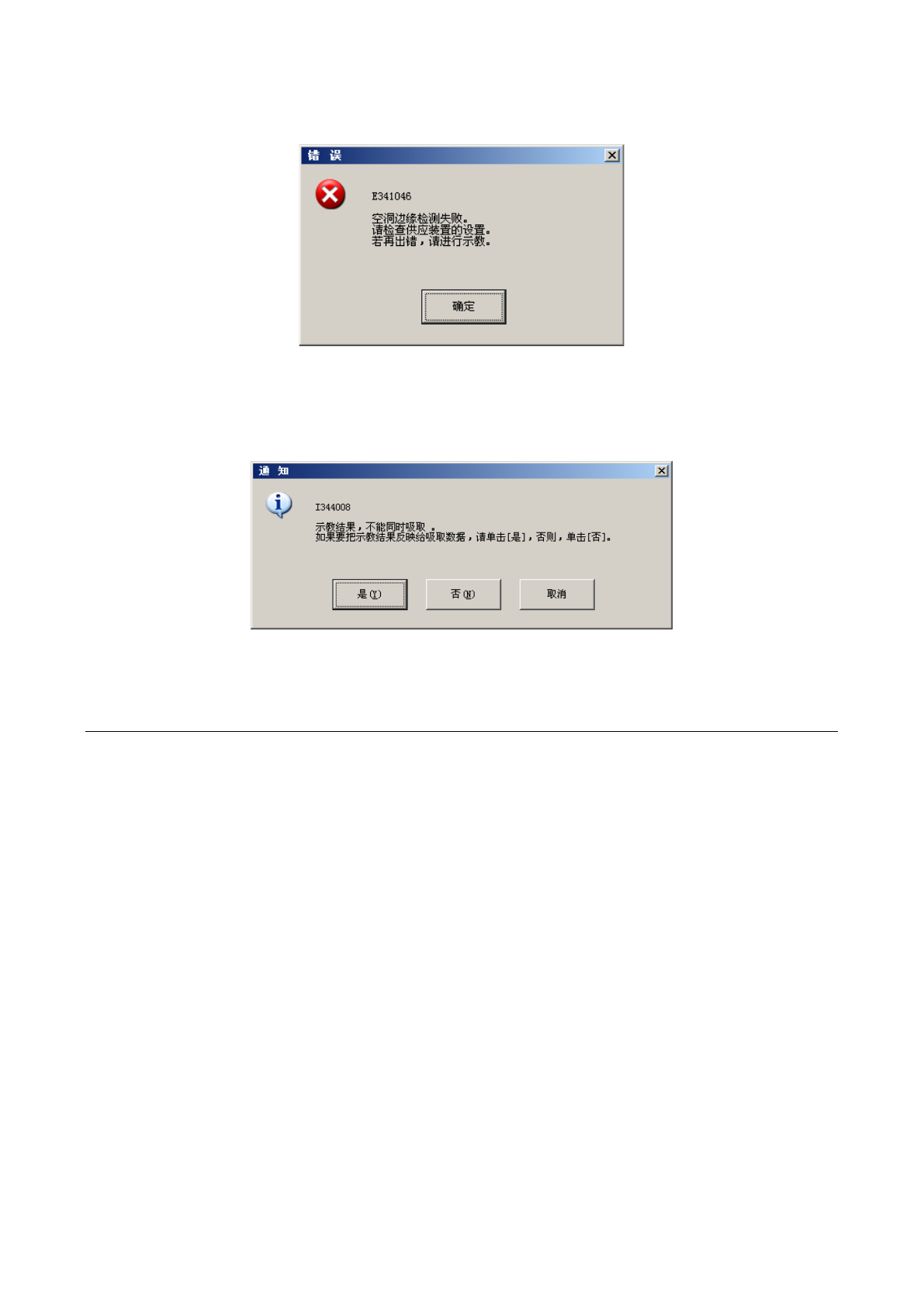 设置的吸取数据与自动示教校正的吸取数据差距过大时,显示如下错误提示。