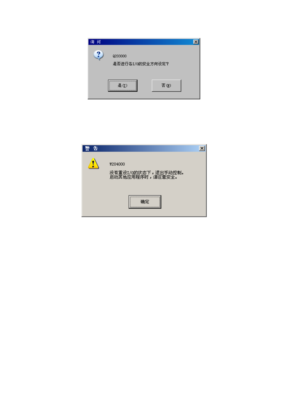 在各 I/O 安全方向设置确认提示信息中选择「否」时,会显示以下提示信息 。
