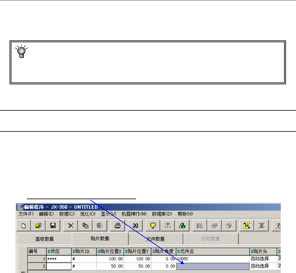 元件名已被注册到数据库时,只要在「贴片数据」中输入元件名,数据库的内容即被注册到正在