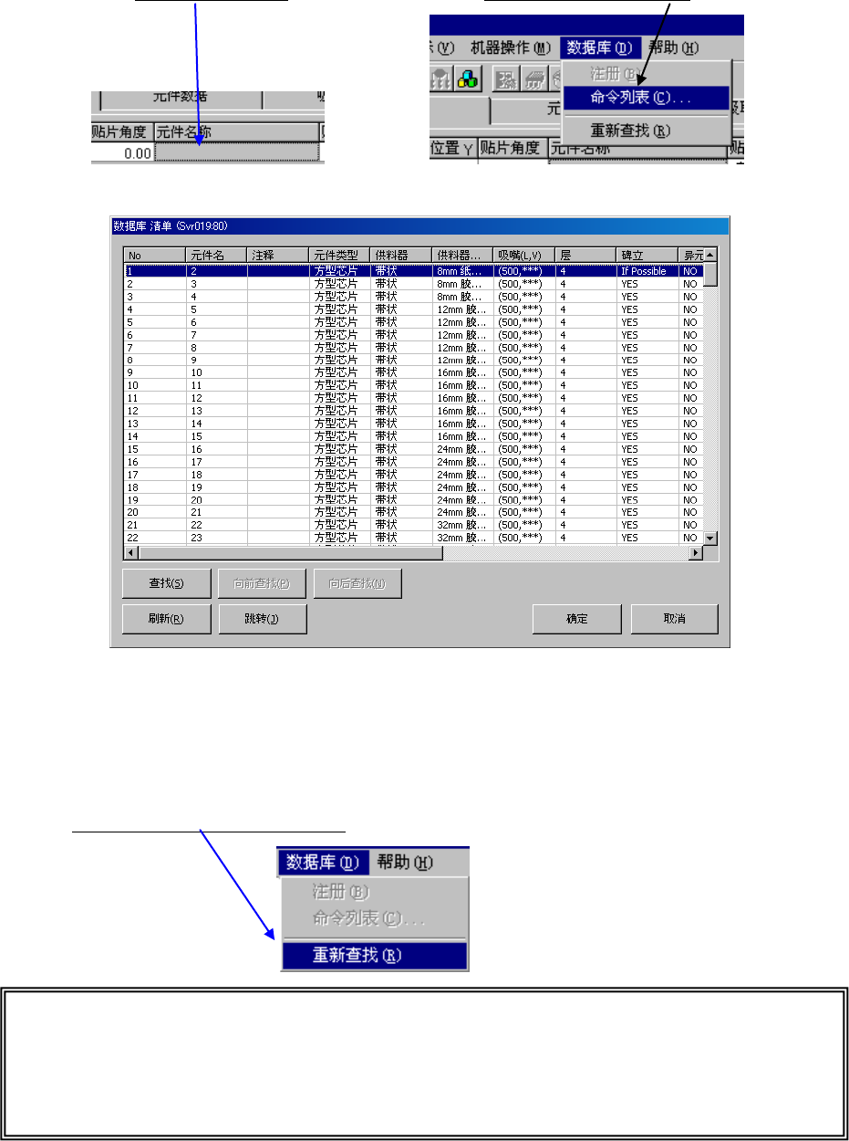 ※ 重新查找:对数据库和贴片数据的元件名进行核对,有相同的元件名时,从数据库中