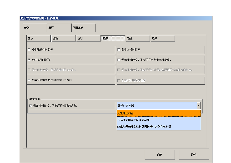 按下[暂停]按钮,会显示“生产暂停选项设置画面”。