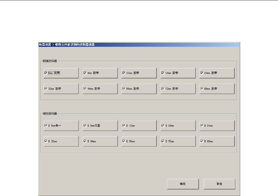 前送料」动作。取消勾选的送料器种类则为「标准送料」动作。