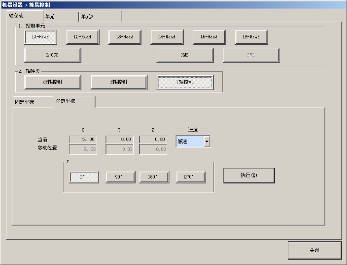 XY 轴的移动如下所示。在主画面上选择控制单元,即可移动轴。
