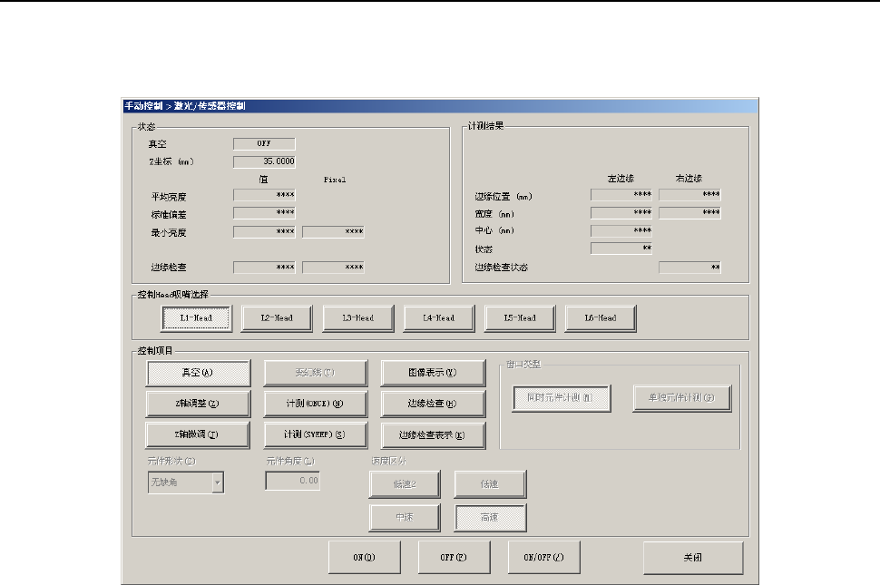 从下拉菜单中选择[Head(D)]-[激光/传感器控制(L)]或选择命令按钮的[激光/传感器控制],显示如下