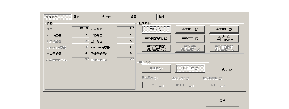 第 2 部 功能详解篇 第 8 章 手动控制 8- 30 8-5-1-2 控制对象:自动调整基板宽度 按下 [ 自动调整基板 宽度 ] 按钮,会显 示如下画面。 若机器设置的 [ 使用单元 ] 未勾选「自动调 整基板宽度」 ,则 不显示。 (1) 状态 显示各传感器、 基板传送宽度的 状态。 (2 ) 控制项目 点击 [ 执行 (E)] 按钮,或 按下 [F3] 键后 ,开始执行控制 处理。 1) 返回原 点 自动调整基板 宽度恢复原 …