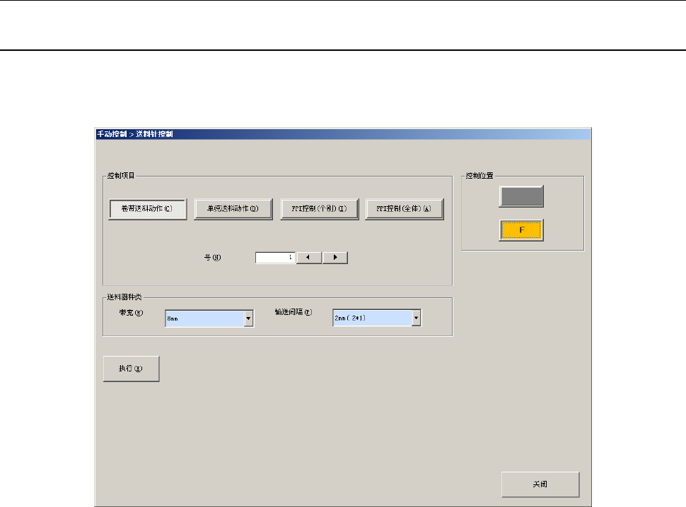 在下拉菜单中点击[供料器(E)]-[送料针控制(N)]、或从命令按钮中点击[送料针控制]后,可显示送料针
