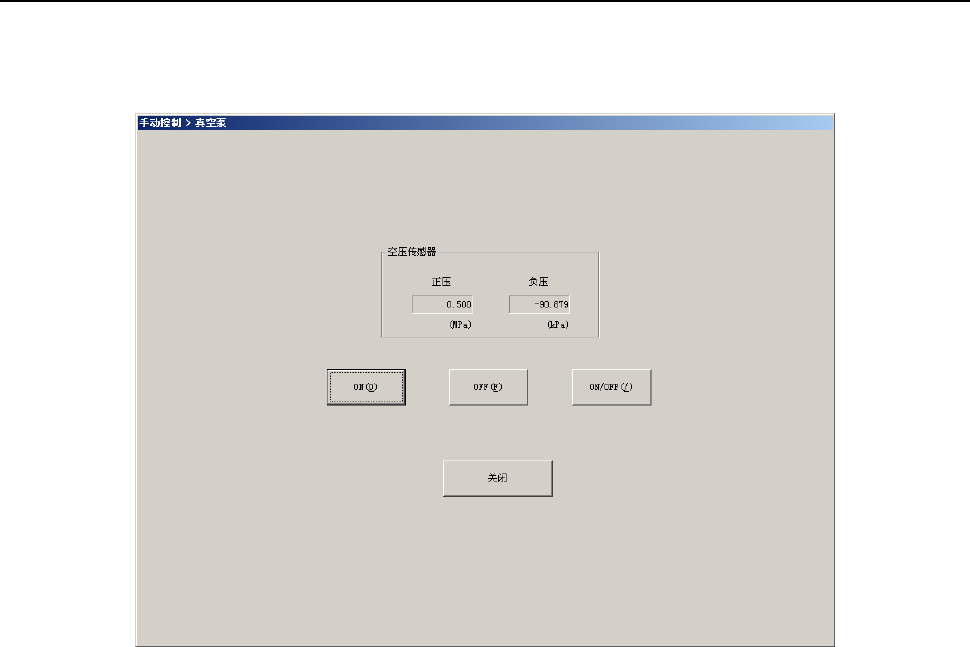 从下拉菜单中选择[其他(O)]-[真空泵控制(P)],或选择命令按钮中的[真空泵控制]后,可显示真空泵控