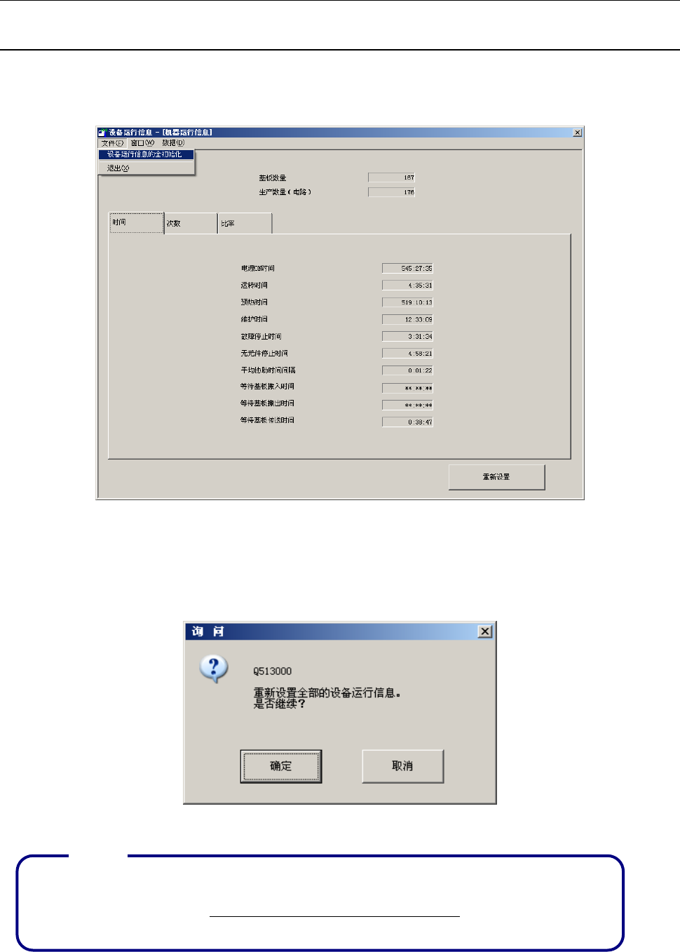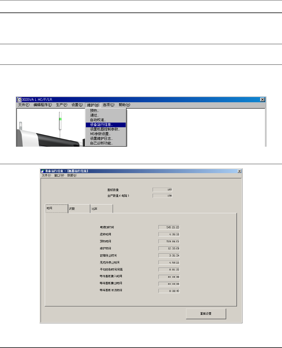 显示机器的运行时间(基板生产时间的累计等)、吸嘴拆装次数等设备固有的运行信息。
