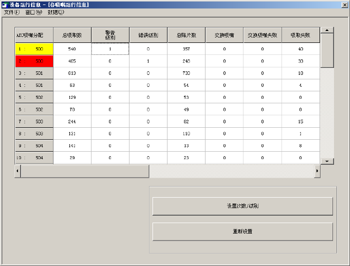 总吸取数超过警告级别时,该吸嘴呈黄色。