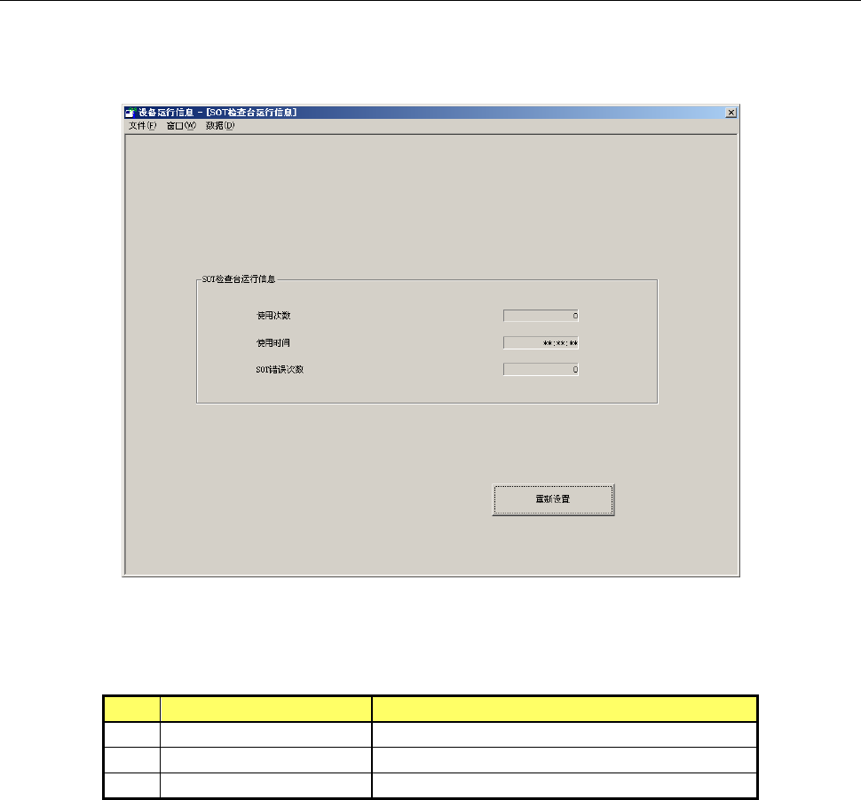 第 2 部 功能详解篇 第 9 章 设备运行信息 9- 21 9-4-7 SOT 运行信息(选购项) 从下拉菜单中点 击 [ 窗口 (W ) ] -[ SOT 运行信息 ] , 或从命令按 钮中点击 [ S OT 运行信息 ] 后, 可 显示 S OT 运行信息画面。 在 MS 参数中没 有设置选项时, 不能选择。 (1) SOT 检查台运行信息 No. 项目 内容 1 使用次数 使用 SOT 检查台的次 数累计。 2 使用时间 使用 …