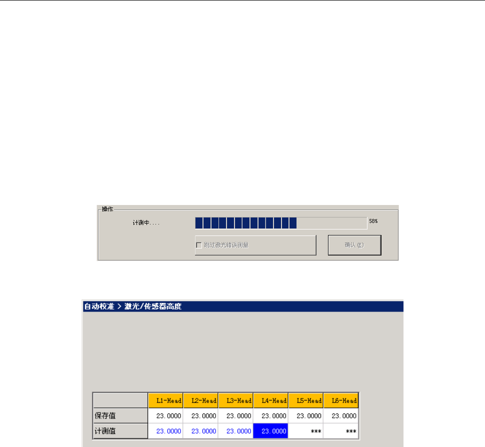 第 2 部 功能详解篇 第 10 章 自动校准 10 -7 如果激光识别错 误或测量结果超 出规定范围外 , 即显示以下提示 信息。 如果是激光识别 错误或测量结果 超出规定范围 外以外的错误, 则显示对象错 误的提示信息 后, 显示停止测量的 提示信息。 (4) 测量结束 如测量结 束则进度条变为 1 00% ,蓝色文字 显示测量值。 按下 [ 确定 ] 按钮,虽然测 量值变成了有 效,但是此时 尚未被保存 / 设置。 退出应用程序后…