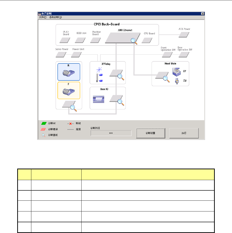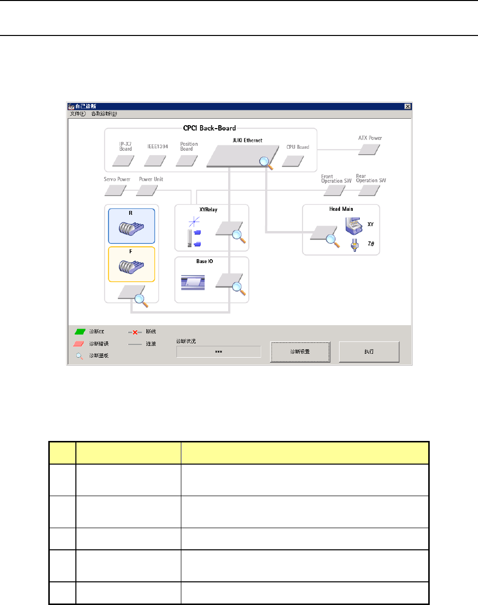 ・ 诊断对象基板带有放大镜标记,诊断中[诊断状况]栏内输出对应基板的诊断状况。