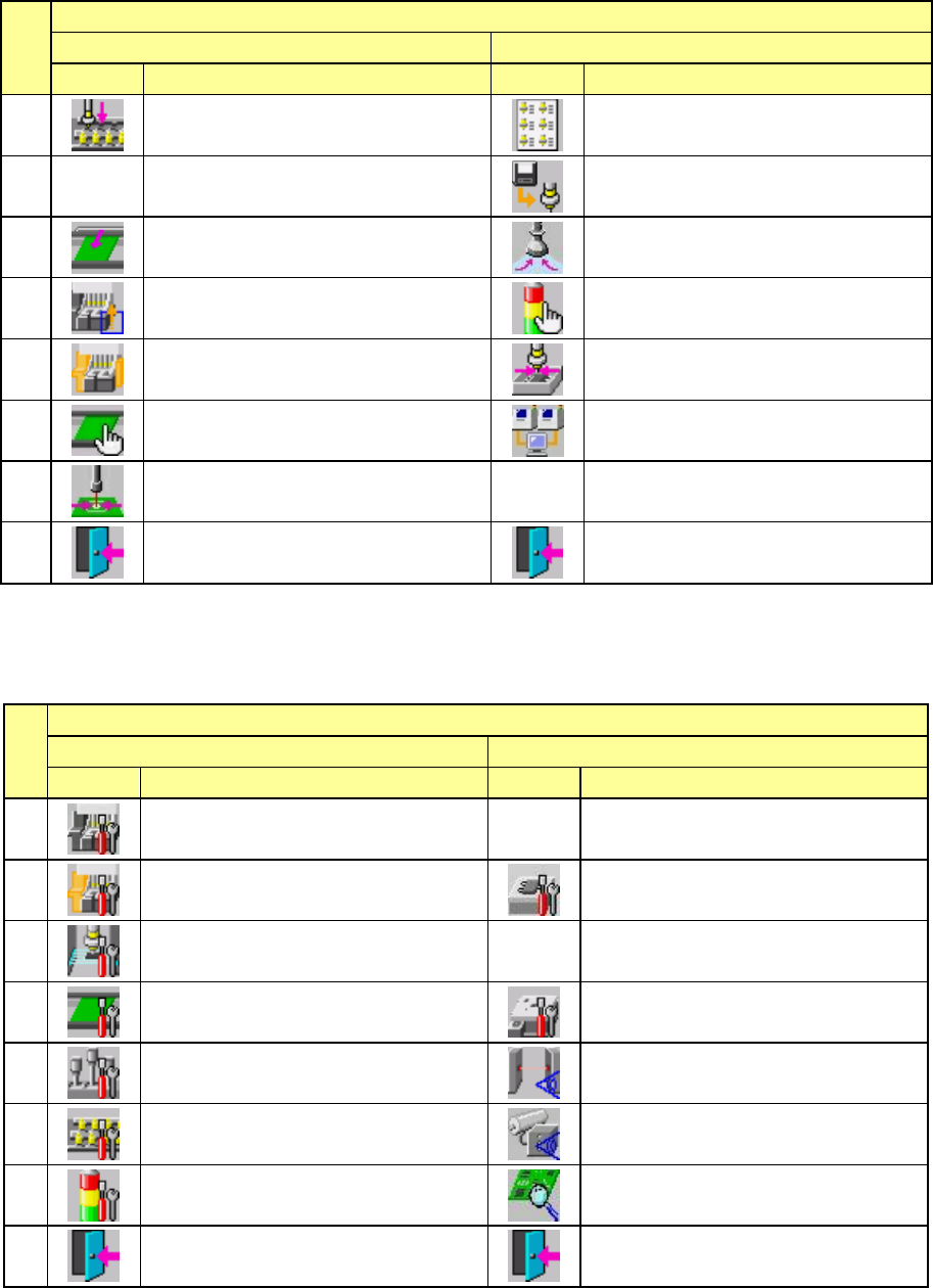第 1 部 基本篇 第 1 章 装置概要 1- 65 ( 3 )机器设 置 ( 4 )手动控 制 No. 页 1/2 2/2 图标 名称 图标 名称 1 AT C 吸嘴分配 注册吸嘴一览 2 读取吸嘴数据 3 外形基准位置 无吸嘴时真空值 4 Head 等待位置 信号灯 5 使用单元 废弃元件位置 6 传送设置 在线连接 设置在线连接 7 坏板标记传感器示教 进行坏板标记传感器 示教 8 退出 返回桌面 退出 返回桌面 No. 页 1/…