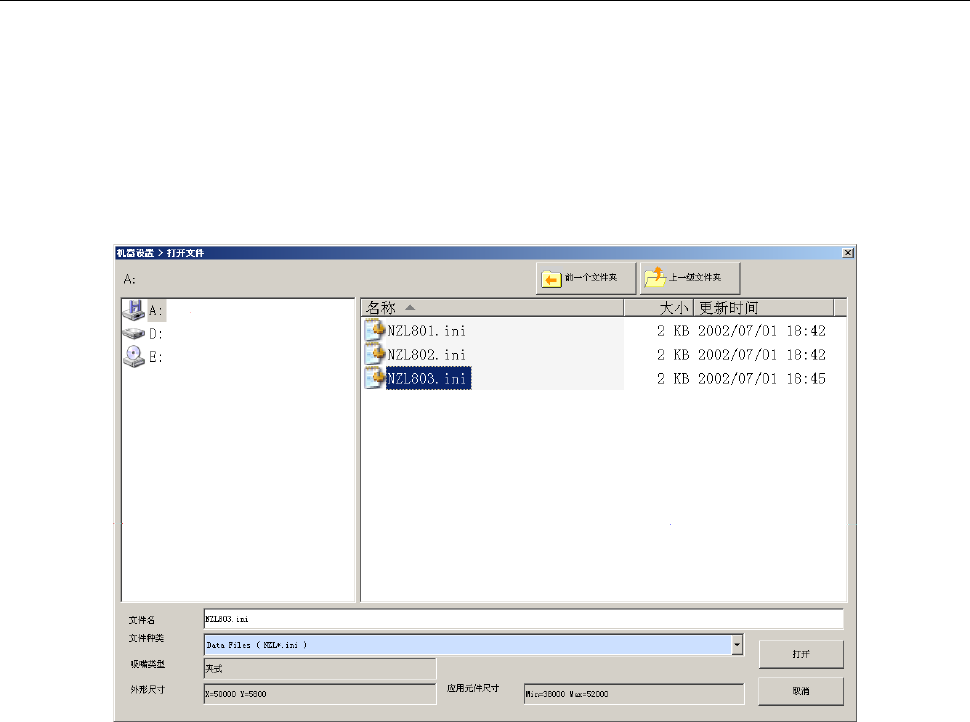 ◇ 选取「机器设置」文件菜单内的「打开吸嘴数据文件」,从下述画面中读取夹持吸嘴信息文