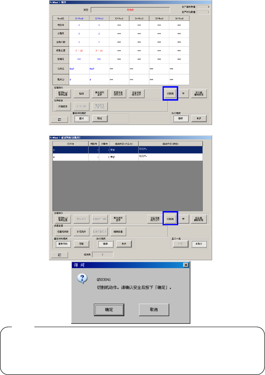 按下[切割机]按钮后,将显示警告信息,此时若按下[确定]即进行切割动作。