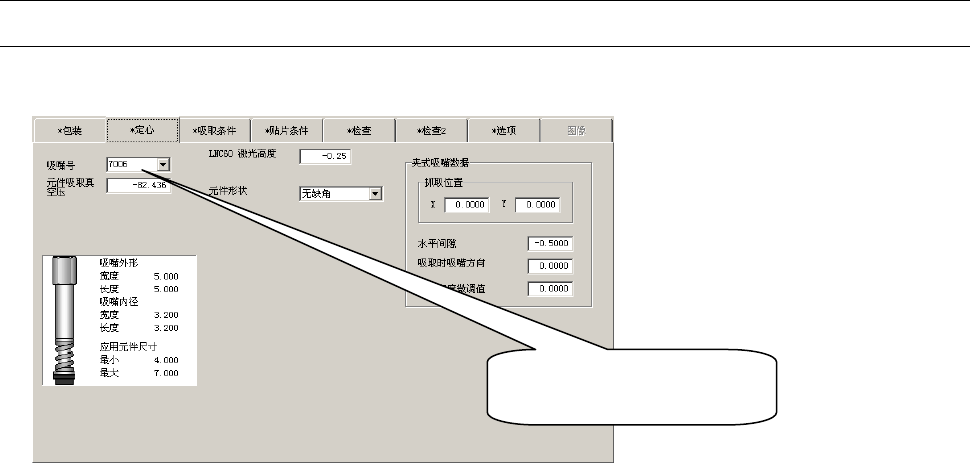 在元件数据的“定心”中,设定螺丝式吸嘴的吸嘴号。