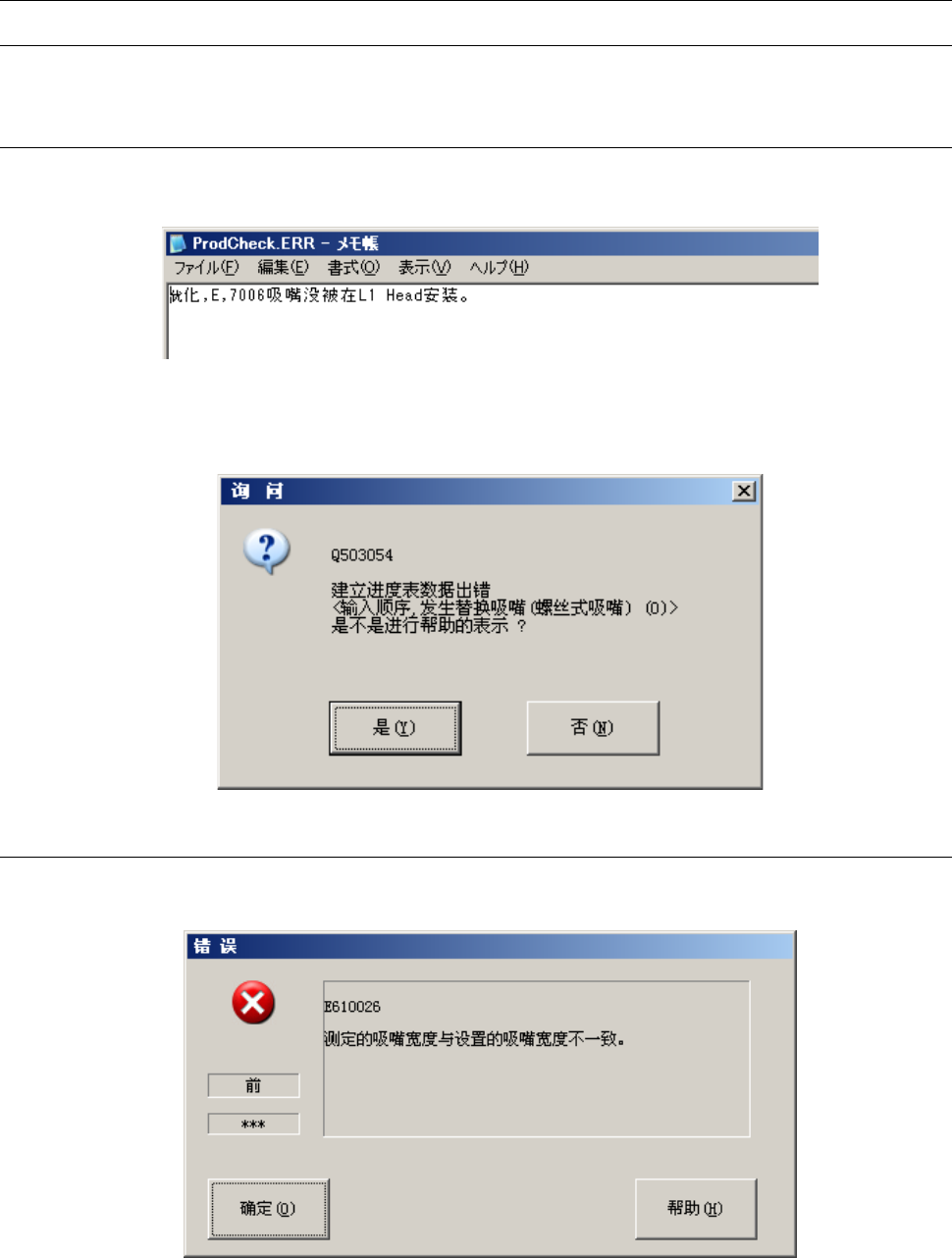 如果安装了与机器设置中配置在 Head 上的吸嘴宽度不一致的吸嘴时,会显示错误。