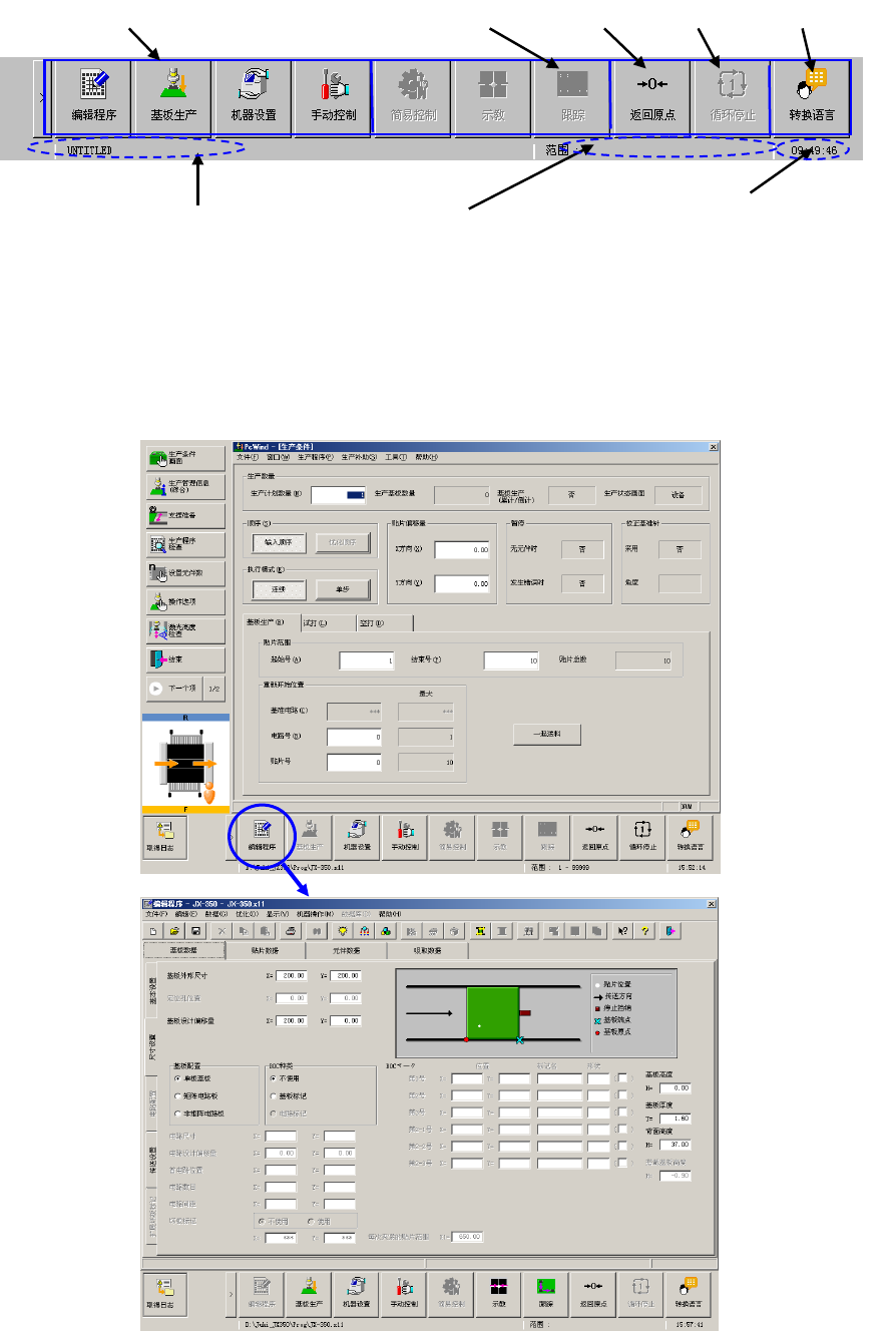 按动程序启动按钮,机器可以快捷地启动和切换编辑、基板生产、机器设置、手动控制、自动校准等