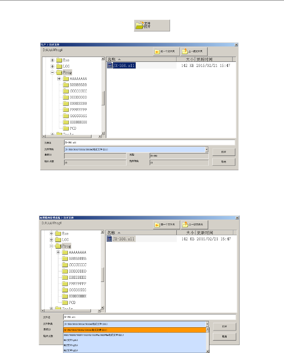 若要读取其他机种的生产程序时,请选择“文件种类”后,再点击「打开」。