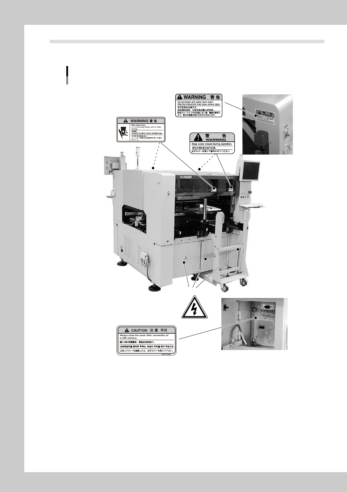 peripheral equipment. Be sure to comply with the instructions on these warning labels.