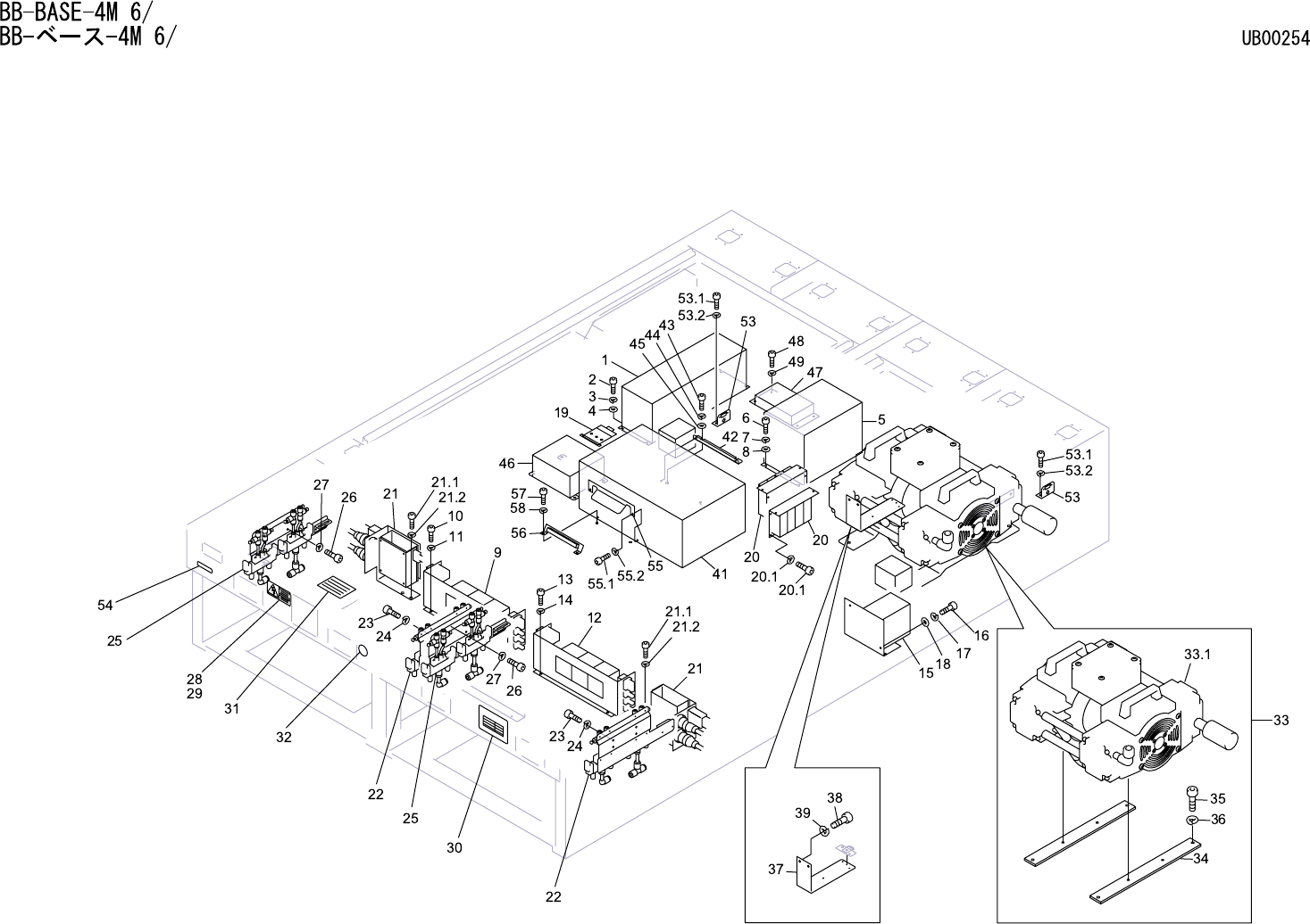 BB-BASE-4M 6/ BB- ベース -4M 6/ UB00254 No. Drg.No. & Code No. QTY Description Rating Materials Remark 番号 図番 & コード番号 個数 品名 規格 材質 備考 1 AJ039** 1 BOX, ELECTRIC BOX 電気 OT 2 H5298A 4 BOLT, HEX SOCKET ボルト 六角穴 M05X010 1 …