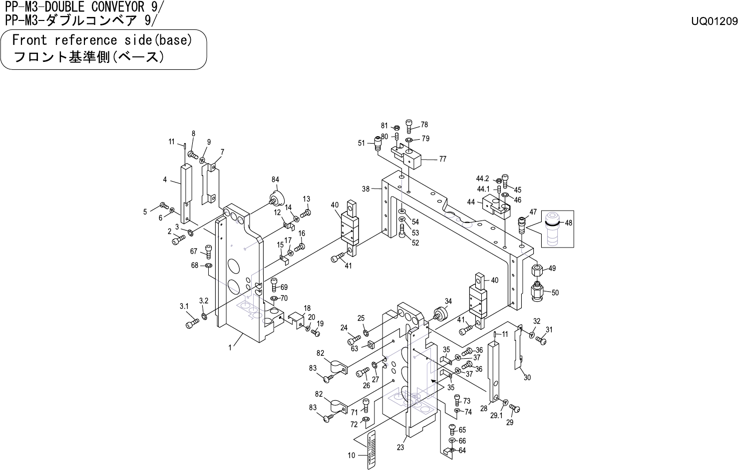 PP-M3-DOUBLE CONVEYOR 9/ PP-M3- ダブルコンベア 9/ UQ01209 No. Drg.No. & Code No. QTY Description Rating Materials Remark 番号 図番 & コード番号 個数 品名 規格 材質 備考 1 PM08609 1 BKT BKT FE 2 H5298A 2 BOLT, HEX SOCKET ボルト 六角穴 M05X010 F…