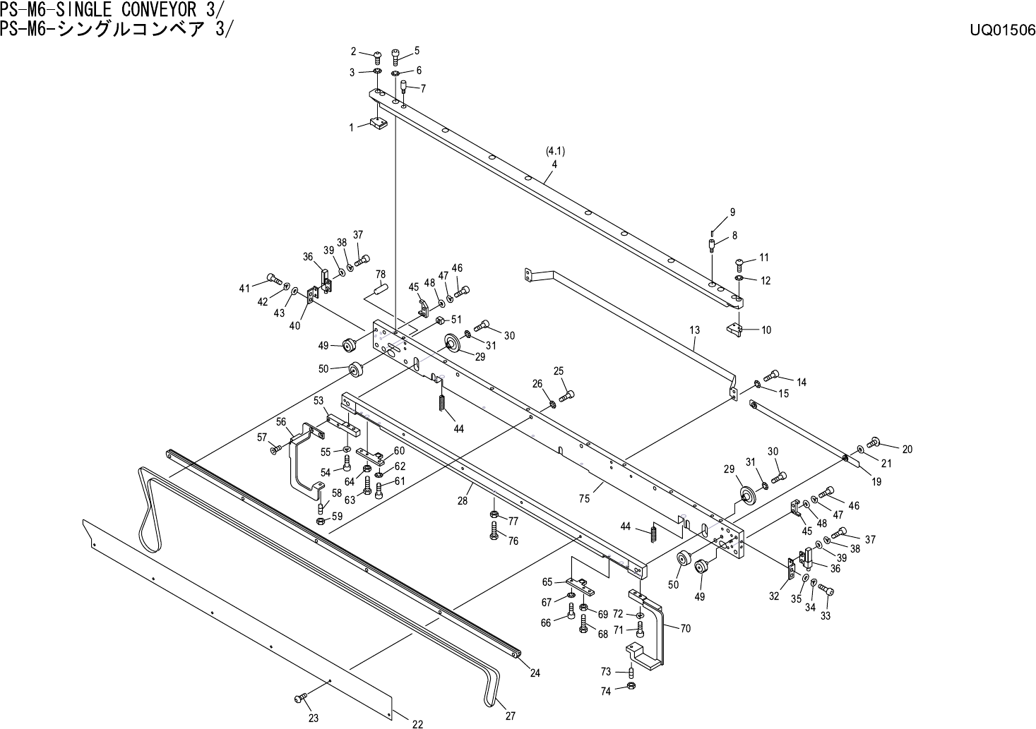 PS-M6-SINGLE CONVEYOR 3/ PS-M6- シングルコンベア 3/ UQ01506 No. Drg.No. & Code No. QTY Description Rating Materials Remark 番号 図番 & コード番号 個数 品名 規格 材質 備考 1 PM01952 1 GUIDE ガイド FE 2 K5255H 2 SCREW, HEX SOCKET BUTTON 小ネジ 六角…