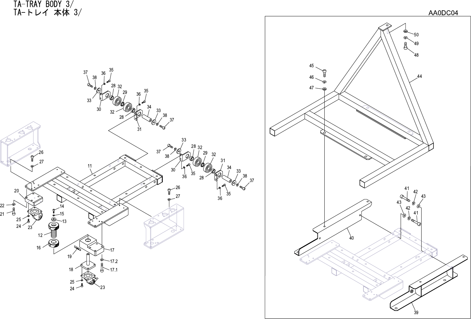 TA-TARY BODY 3/ TA- トレイ 本体 3/ AA0DC04 No. Drg.No. & Code No. QTY Description Rating Materials Remark 番号 図番 & コード番号 個数 品名 規格 材質 備考 11 PM25631 1 FRAME フレーム FE 12 PM34512 1 BOLT, ADJUSTING ボルト セリ FE 13 K11388 1 COL…