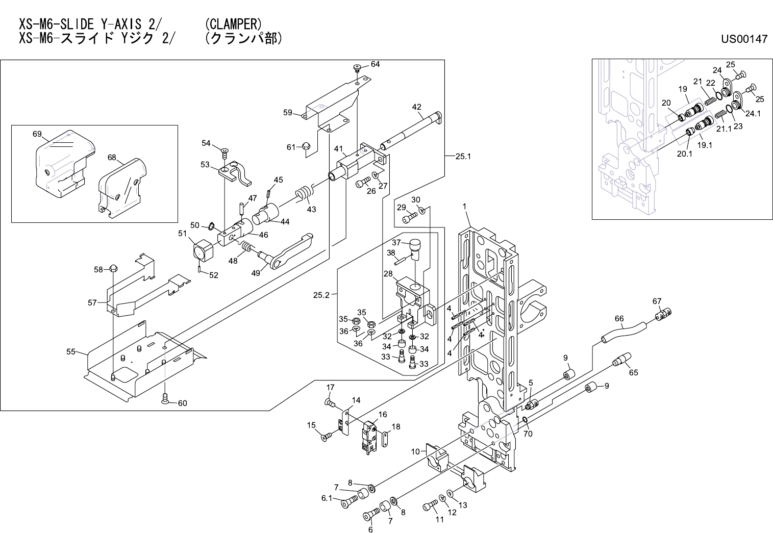 XS-M6-SLIDE Y-AXIS 1/2 XS-M6- スライド Y ジク 1/2 US00147 No. Drg.No. & Code No. QTY Description Rating Materials Remark 番号 図番 & コード番号 個数 品名 規格 材質 備考 73 H5268T 1 BOLT, HEX SOCKET ボルト 六角穴 M02.5X006 FE 74 W1020H 1 WASHE…