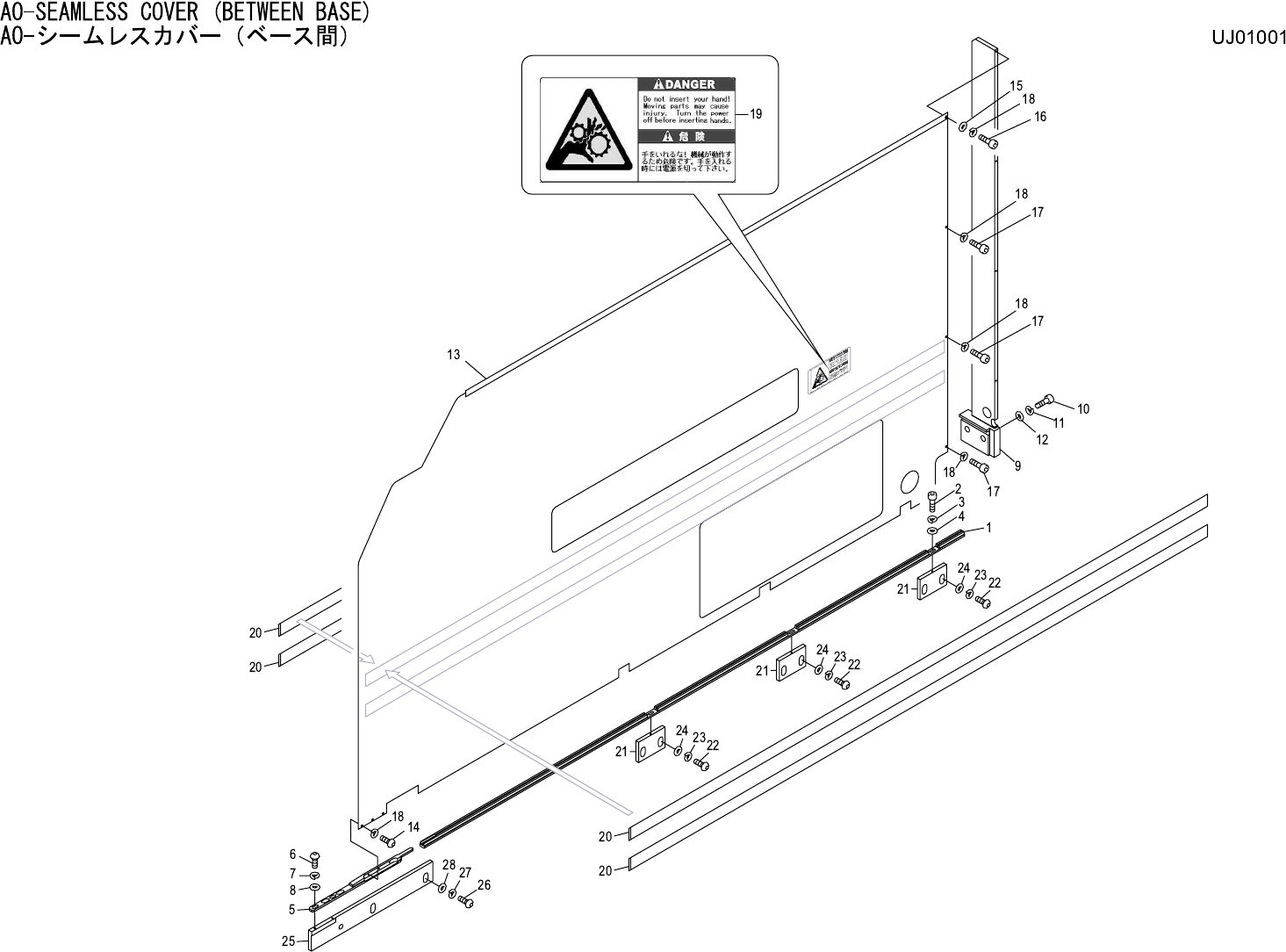 AN-SEAMLESS COVER (BETWEEN MODULE) AN- シームレスカバー(モジュール間) UJ00901 No. Drg.No. & Code No. QTY Description Rating Materials Remark 番号 図番 & コード番号 個数 品名 規格 材質 備考 1 PT00550 1 RAIL, LOWER レール 下 AL 2 H5289A 3 BOLT, HEX S…