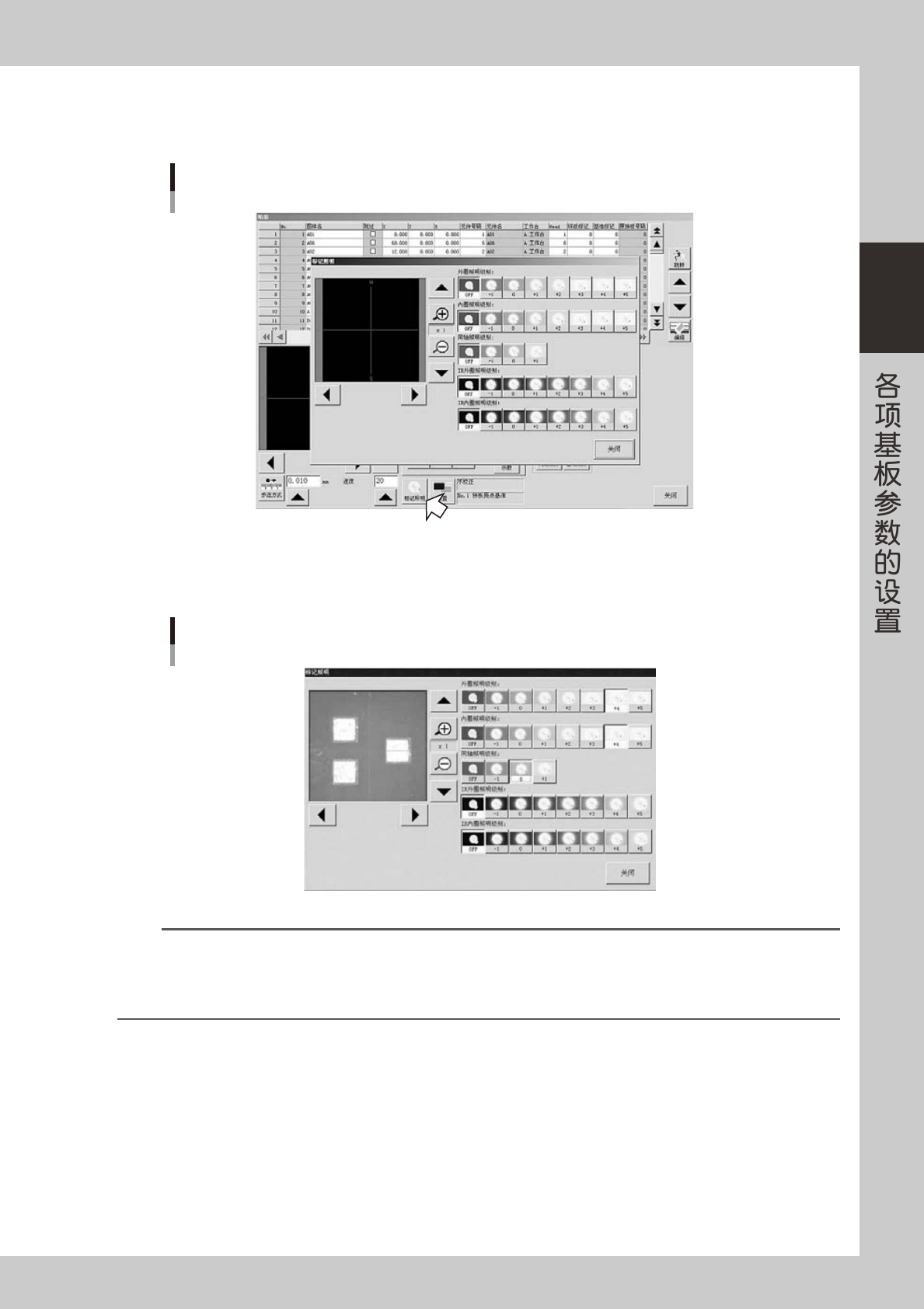圈照明级别”、“同轴照明级别”用于表面平坦、有厚度的元件。“IR 外圈照明级别”、“IR 内圈照明级别”为红外线照射,用于表面