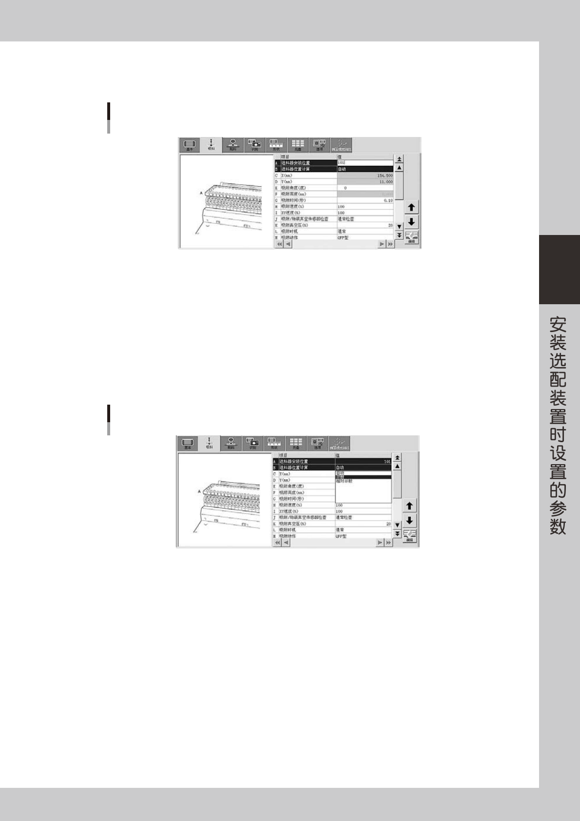 将“吸料”画面的“送料器位置计算”参数设置为“示教”。