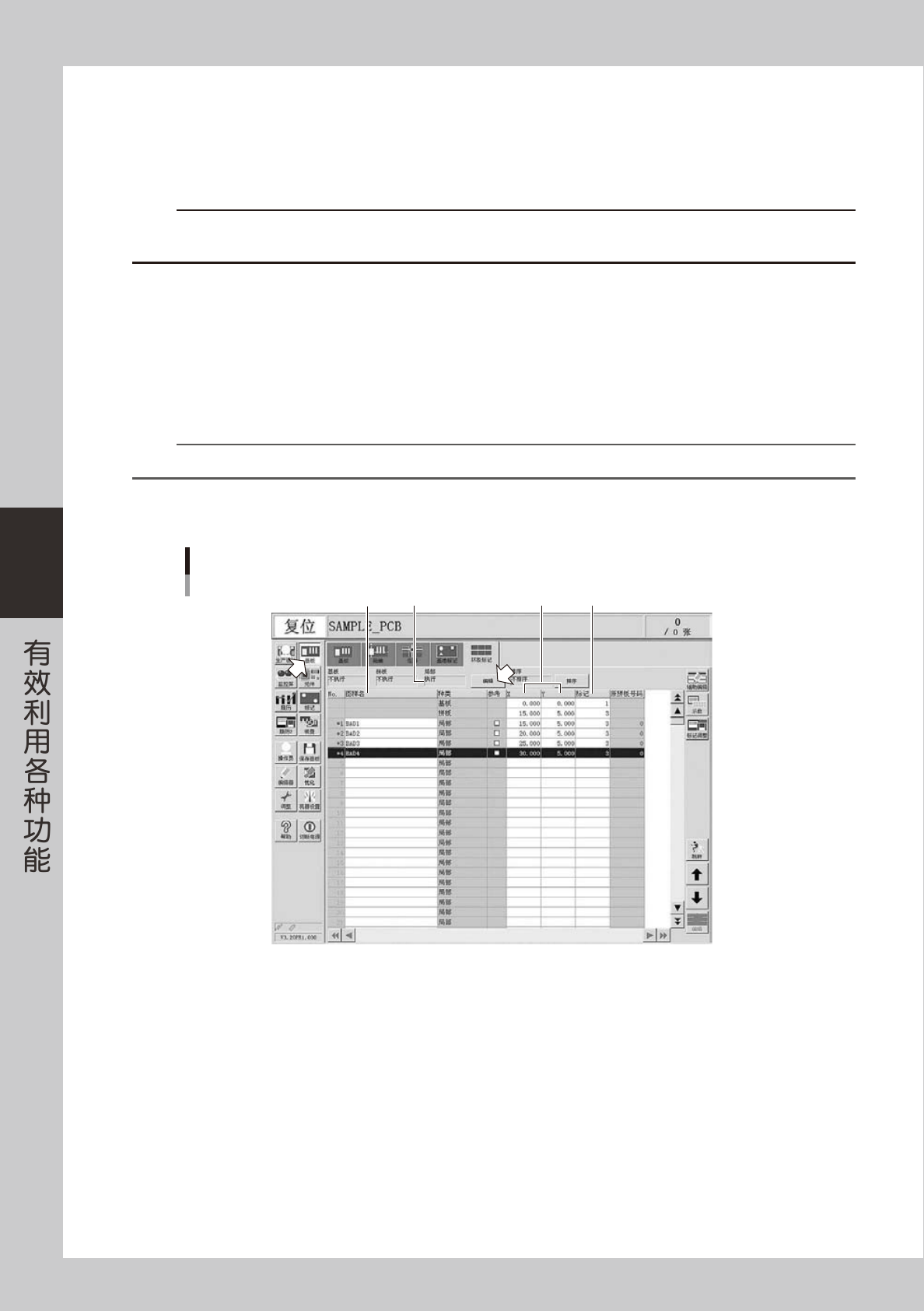 数据中设置的坏板标记,来指定是否进行该贴装数据的元件贴装。想要使用局部坏板标记,必须进行必要的数据