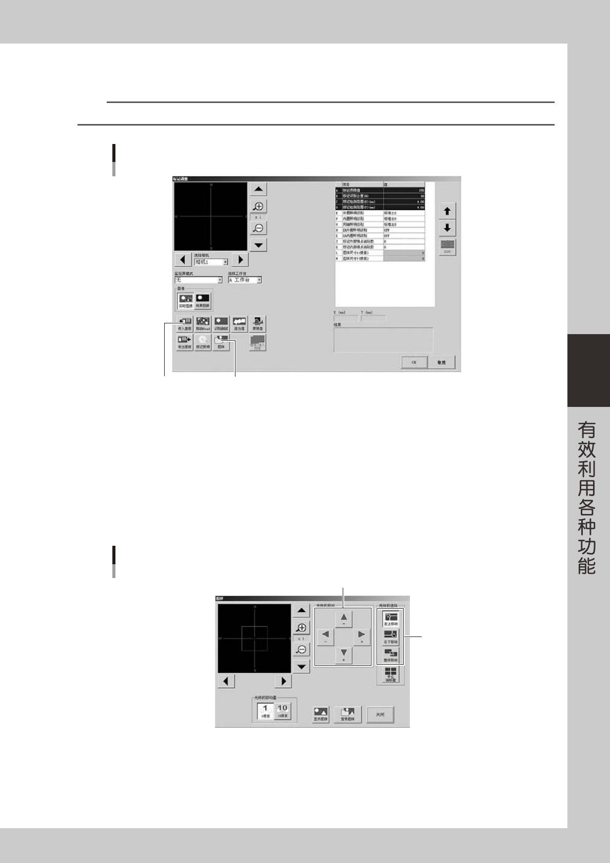 4-20 4 8 决定图样的大小。 使用移动按钮与箭头按钮,调节红框的大小、位置,使红框能框住整个图样。 各按钮的功能,如下所示。 · [ 左上移动 ] 按钮 以红框右下角为基准点,用箭头按钮可任意扩大或缩小红框,但不能向基准点右方和下方扩大。 · [ 右下移动 ] 按钮 以红框左上角为基准点,用箭头按钮可任意扩大或缩小视窗,但不能向基准点左方和上方扩大。 · [ 整体移动 ] 按钮 使整个红框移动。 · [ 中心偏移量 ] 按钮 显示…