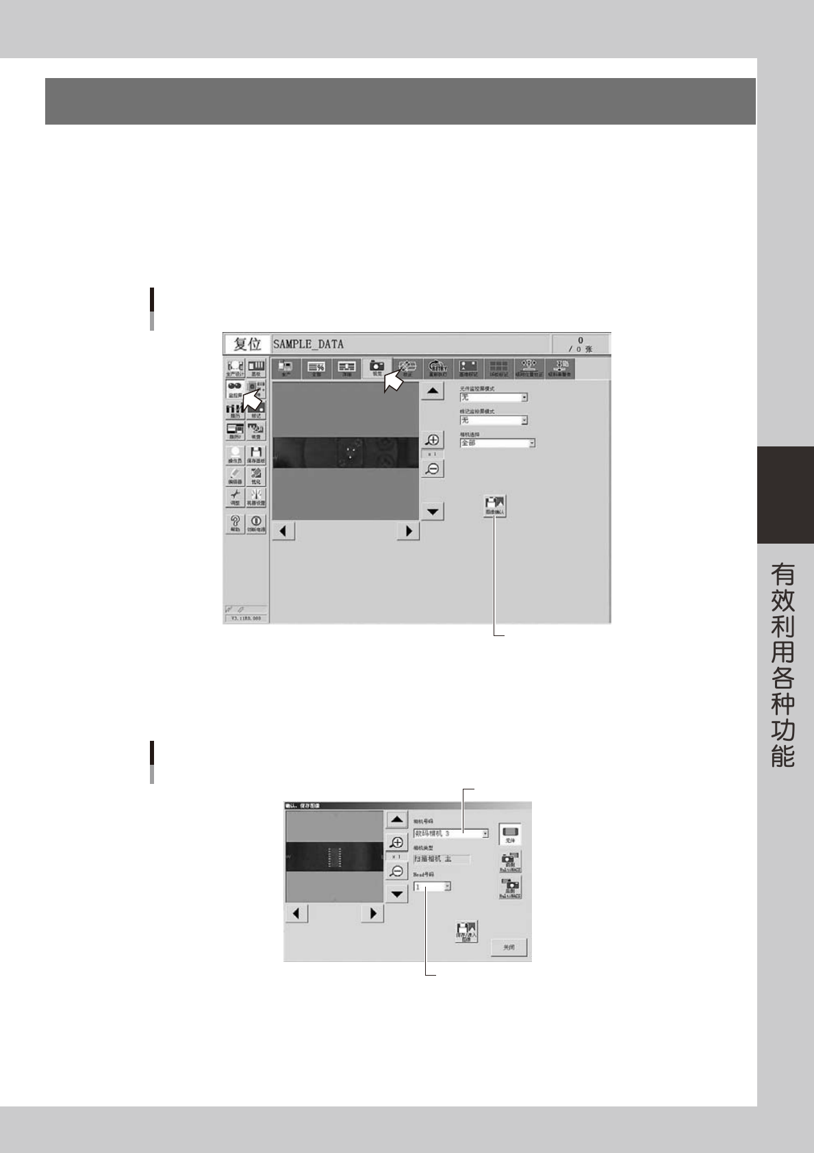 切换相机号码和 Head 号码,选择想要确认或保存的图像。